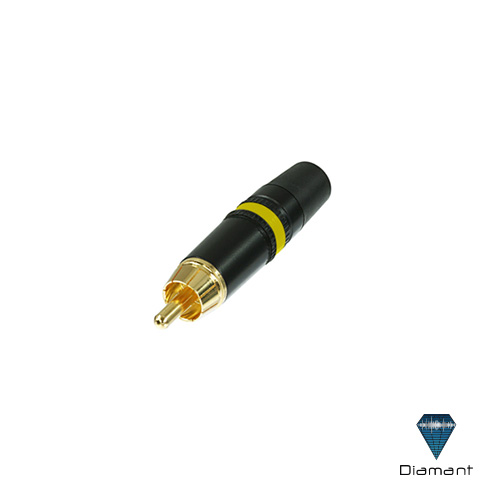 CONECTOR PLUG RCA METAL NEGRO CONTACTO ORO ID AMARILLO