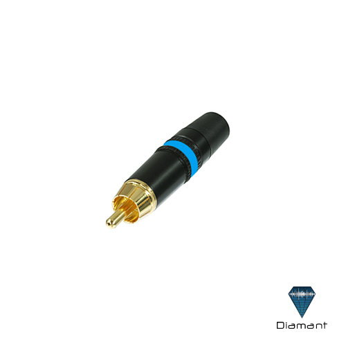 CONECTOR PLUG RCA METAL NEGRO CONTACTO ORO ID AZUL