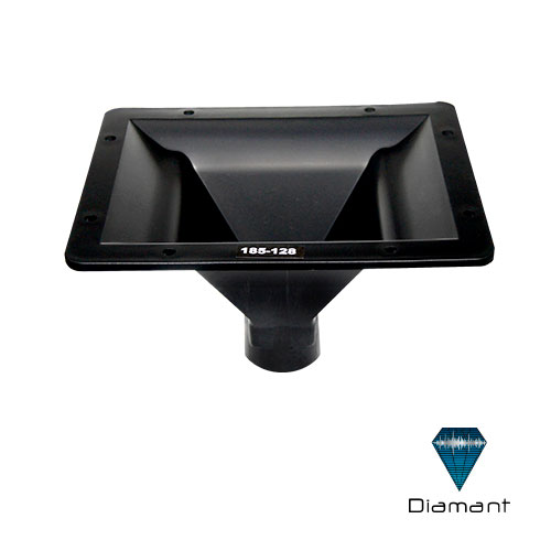 Difusor de plástico rectangular con rosca, ideal para uso en cajas acústicas de fuente puntual.